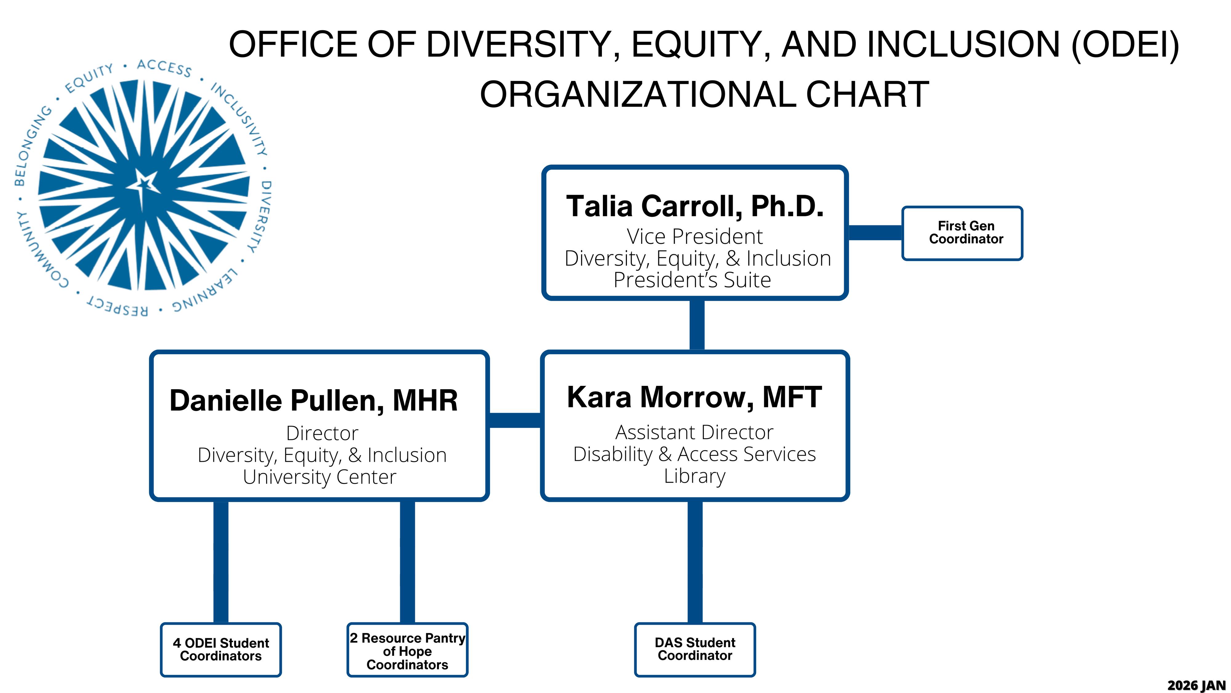 The Office of Diversity, Equity, and Inclusion envisions a campus where belonging is foundational, inclusion is intentional, and every community member feels seen, valued, and connected. We strive to lead transformative change by nurturing a culture where diverse identities, experiences, and voices thrive in unity.